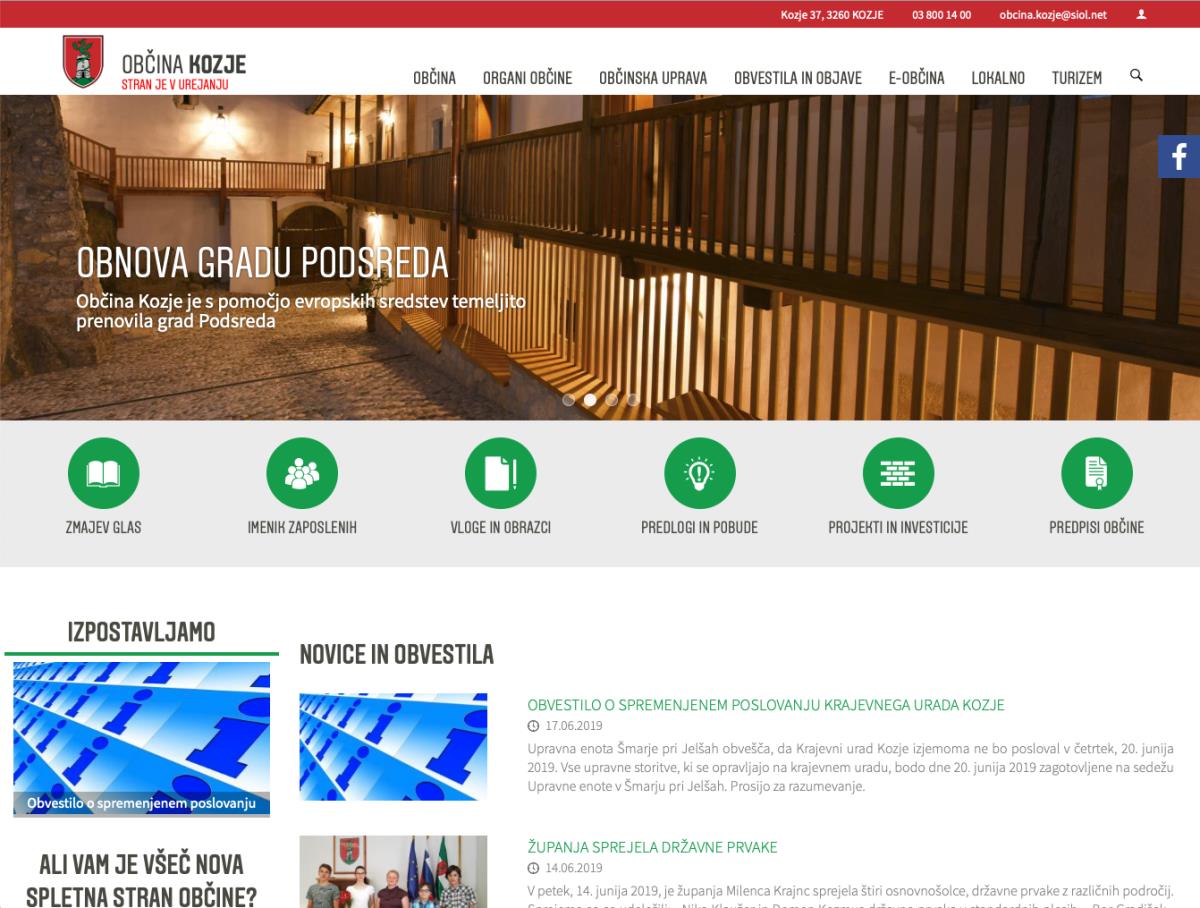 Več kot 80-im občinam ki uporabljajo speltno stran e-občina, se je pridružila še Občina Kozje. Občina Kozje tako na novi spletni strani po novem omogoča nove funkcionalnsoti: