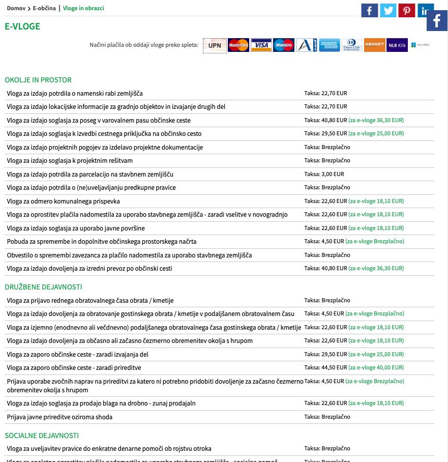 - oddajo elektroskih vlog in spletno plačevanje taks, digitalno podpisovanje vlog