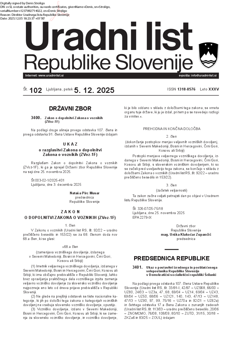 Uradni list Republike Slovenije, št. 102/2025