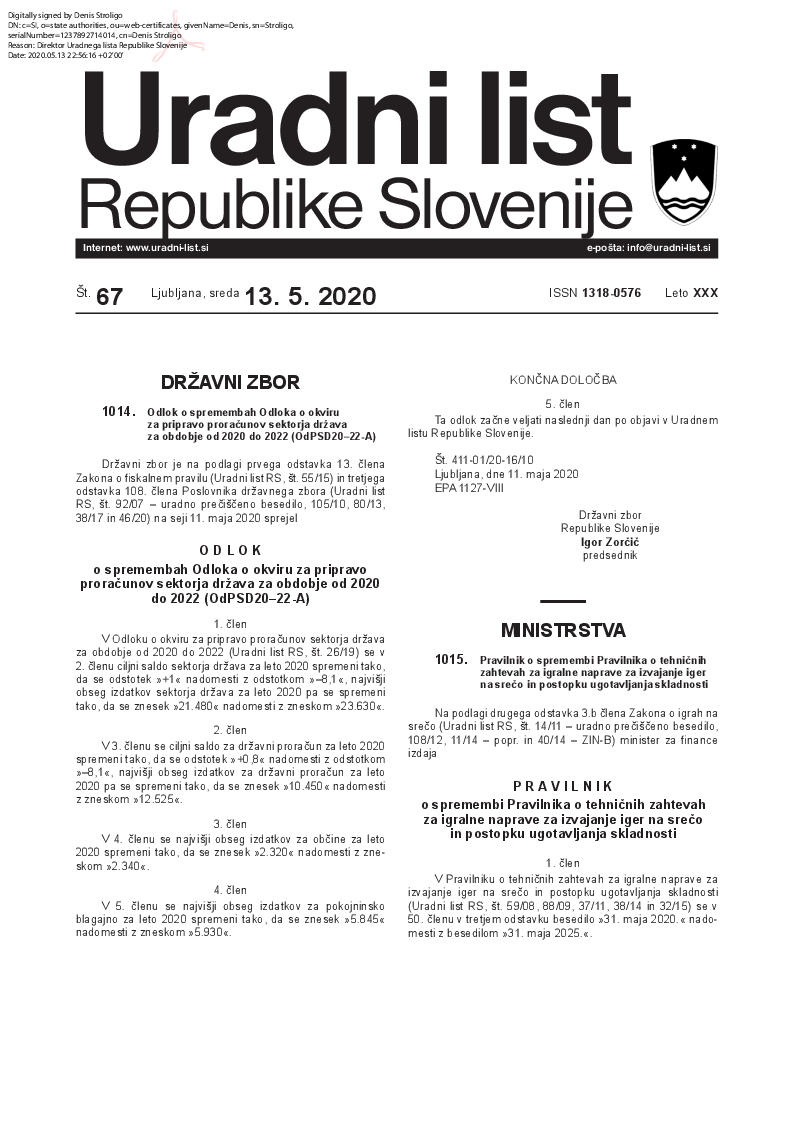 Uradni list Republike Slovenije št. 67/2020