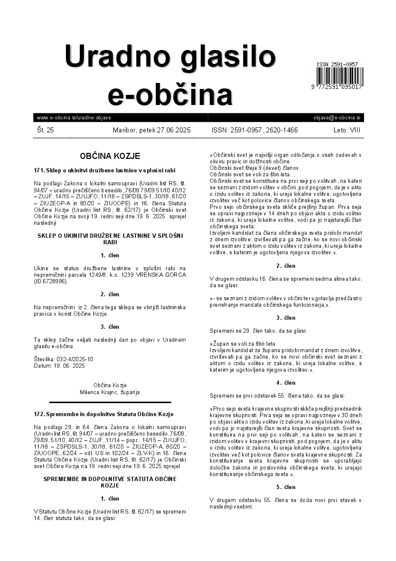 Spremembe in dopolnitve Poslovnika Občinskega sveta Občine Kozje