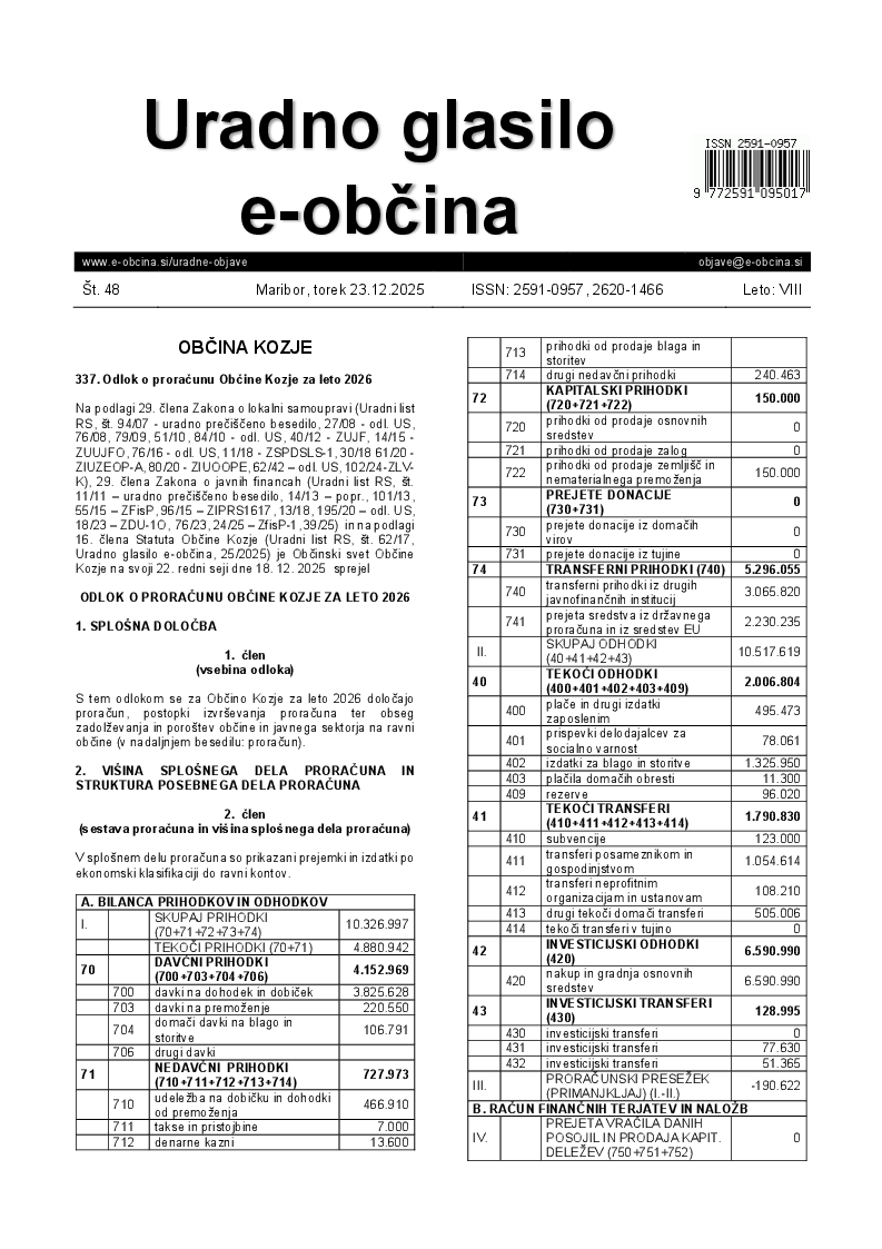 Odlok o proračunu Občine Kozje za leto 2026